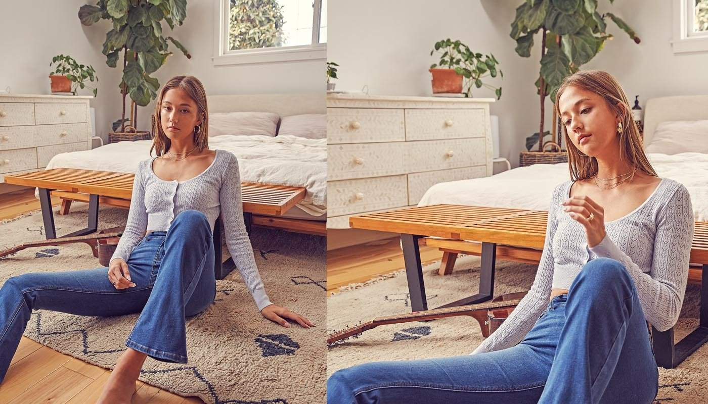 Flared or bootcut jeans are characterized by a flared or bootcut leg silhouette that create a retro element. These jeans combined with high heels optically lengthen your legs and balance your hips - a perfect choice for the A-line round.